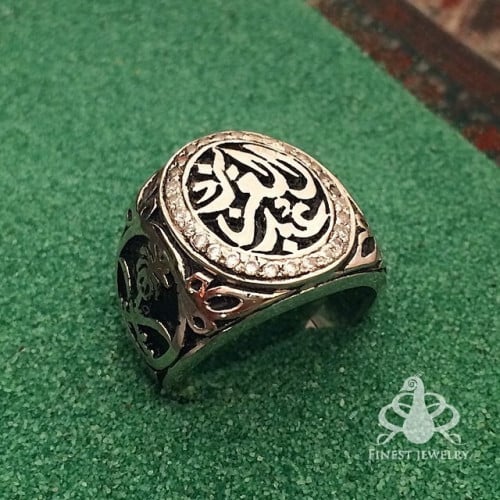 دبلة الأسماء والعبارات بأحجار - 12mm